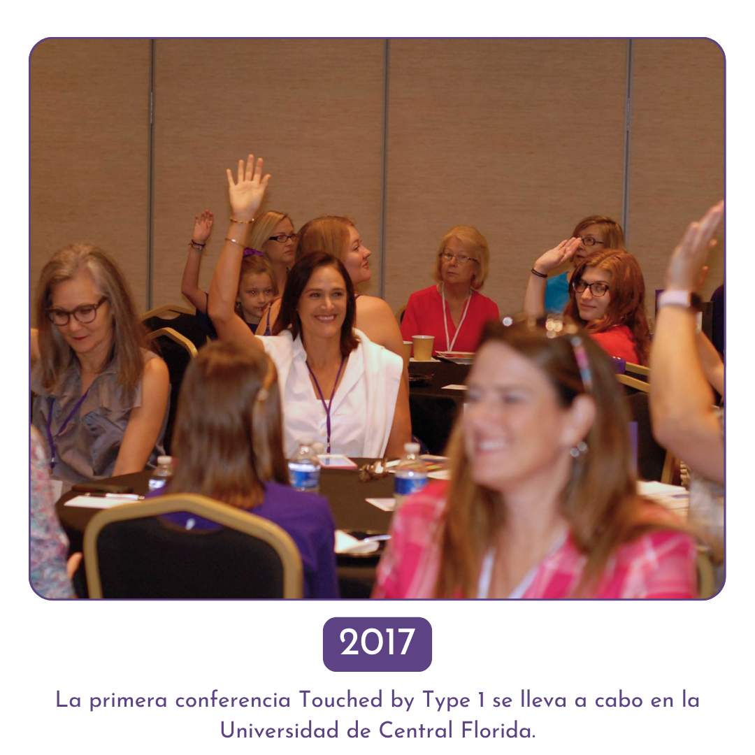 La conferencia anual Touched by Type 1 es una conferencia abierta para personas de todas las edades y orígenes. El objetivo es educar, alentar y empoderar a todos aquellos afectados por la diabetes tipo 1, desde las personas diagnosticadas hasta quienes tengan algún caso en su círculo cercano. La conferencia anual brinda una oportunidad única de rodearse de expertos que han alcanzado la prosperidad, viven con diabetes tipo 1 y quieren compartir su experiencia.